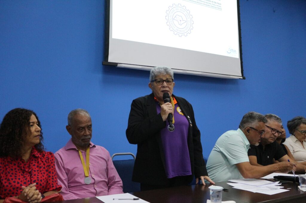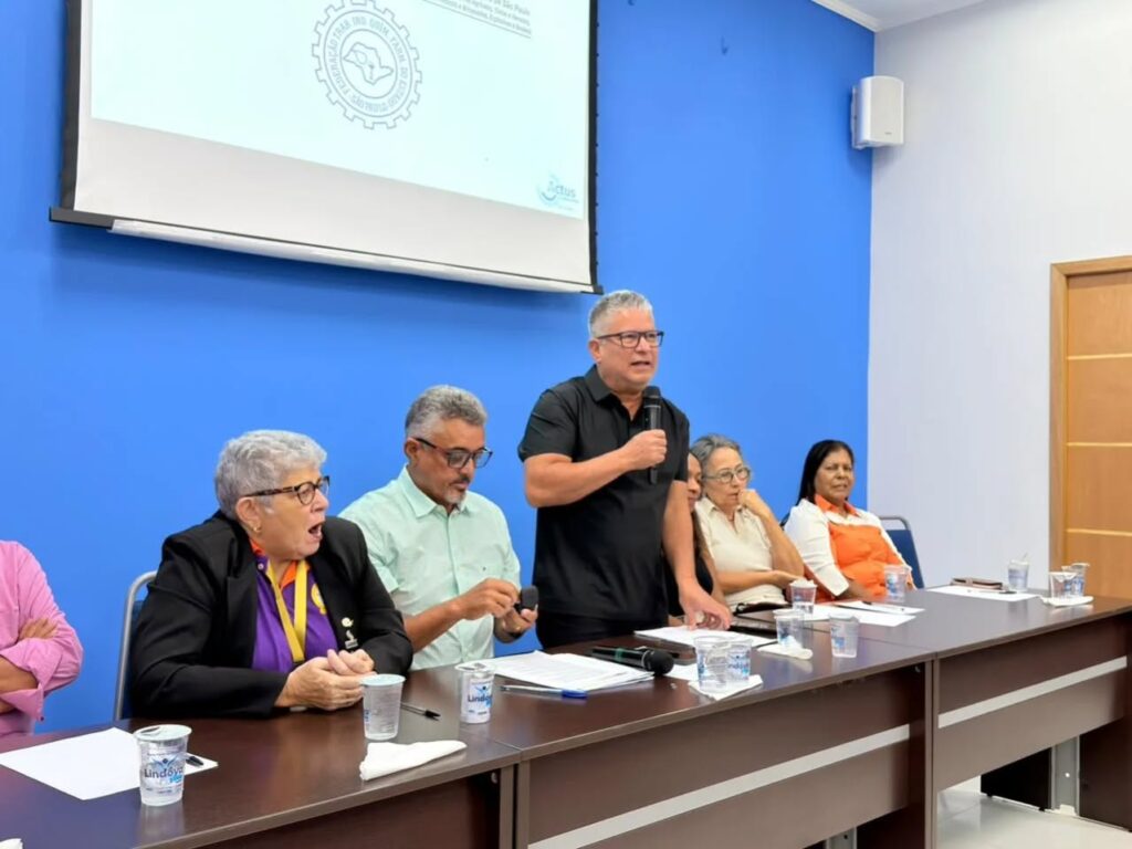 Na abertura, Sérgio Luiz Leite, o Serginho, presidente da FEQUIMFAR e vice-presidente da Força Sindical, ressaltou a importância da CONCLAT 2026 e da Marcha a Brasília, além da necessidade de avançar em políticas de igualdade, cuidado e combate a todas as formas de violência.