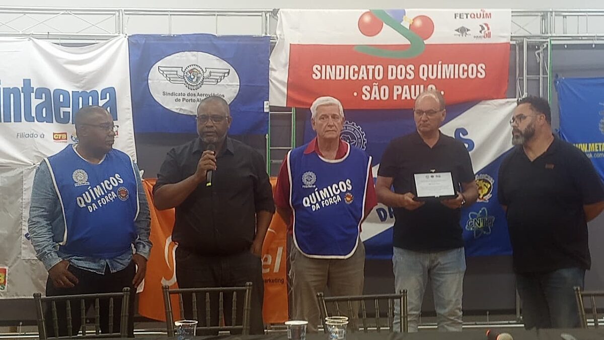 Durante a cerimônia, foi prestada uma homenagem especial ao companheiro Milton Antônio Roberto, que foi diretor do Sindicato dos Químicos de Rio Claro e Região e integrante da gestão 2023–2025 do DIESAT.